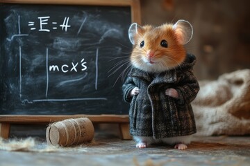 Genius in Disguise: A Hamster Posing as a Mathematician with a Blackboard