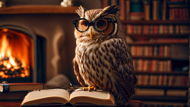 Cute cartoon owl with a book