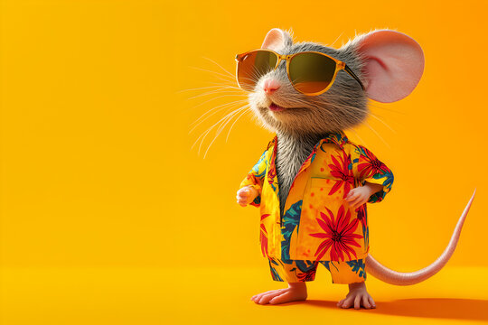 Fashionable Mouse in Floral Outfit and Sunglasses