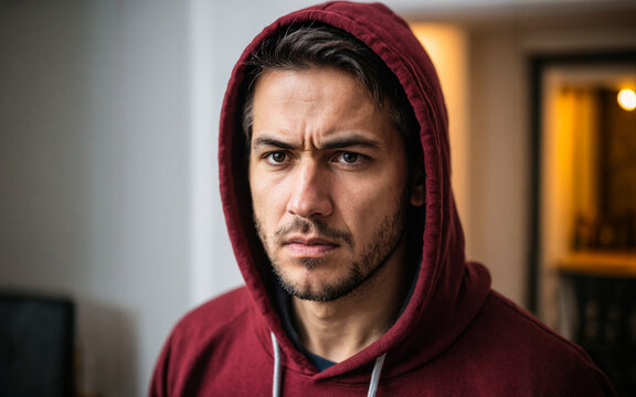 Pensive young man in thoughtful moment indoors