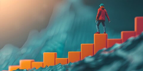 Economic Growth Character Pushing Up a Prosperous Bar Graph