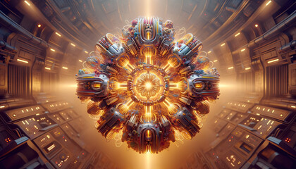 Futuristic Fusion Reactor with Intricate Metallic Design