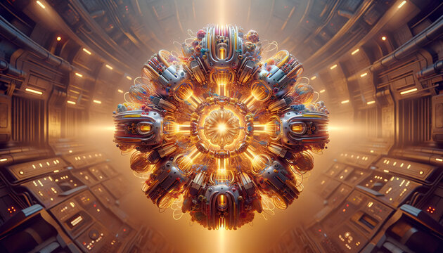 Captivating Fusion Reactor: Intricate textures, vibrant colors, and awe-inspiring shapes in exquisite detail.