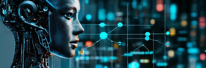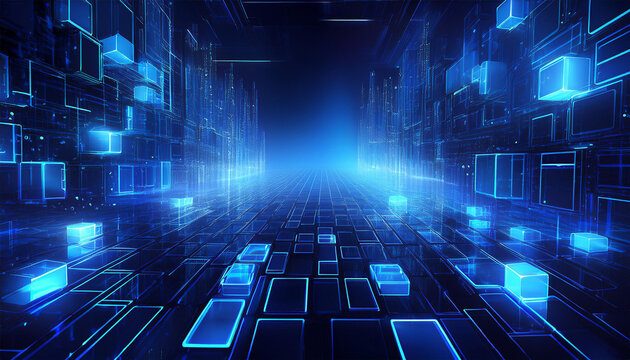 digital data blocks in dark futuristic cyberspace blue neon glowing cubes with cyber energy like tech innovation panoramic background concept of technology pattern