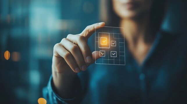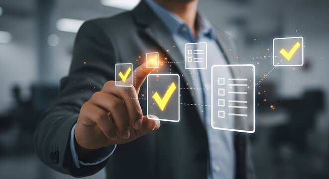 Agenda meeting concept: Businessman touching agenda icon on virtual screen to schedule meeting plans in a personal organizer.