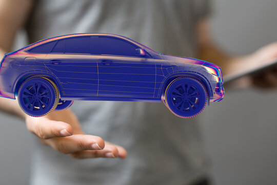 Futuristic 3d Car Model With Digital Data Interface Display Images
