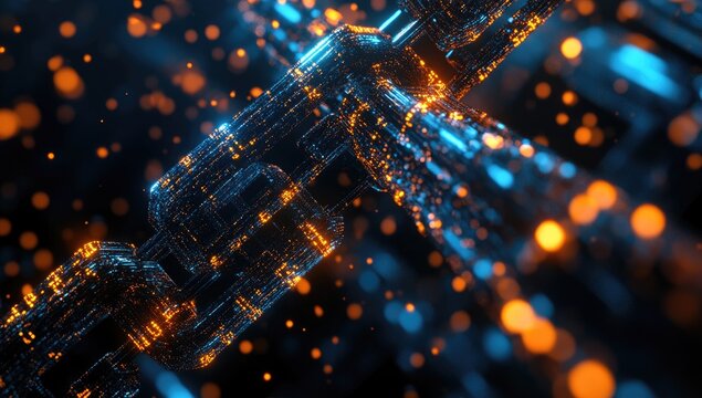 Abstract digital chain design with glowing particles