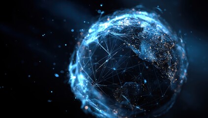 Futuristic 3d digital globe featuring asia with illuminated network nodes