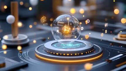 Futuristic data visualization sphere digital workspace 3d graphic design high-tech environment close-up perspective innovation concept