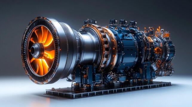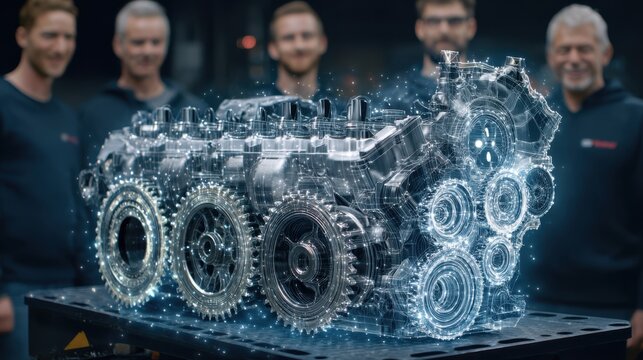 Innovative engine design and development industrial workshop 3d visualization high-tech environment close-up perspective