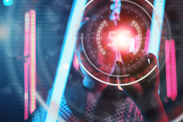 Futuristic data analysis interface with digital graph overlay