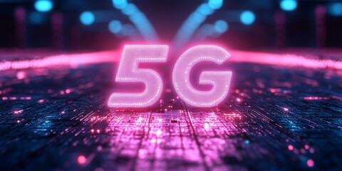 Photorealistic 5G Networks Concept in Neon Lights and Technology