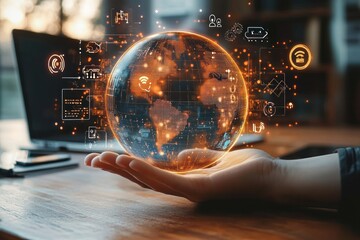 Futuristic digital globe with AI 5G IoT holographic interface smart technology innovation