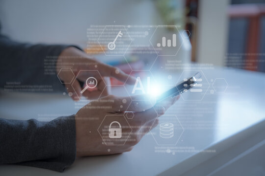 person using Ai technology in his business by artificial intelligence,  smart robot AI, Futuristic technology transformation, using AI technology for developing running business on cloud computing