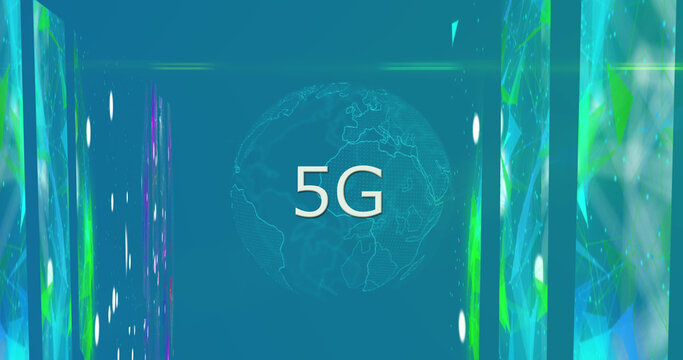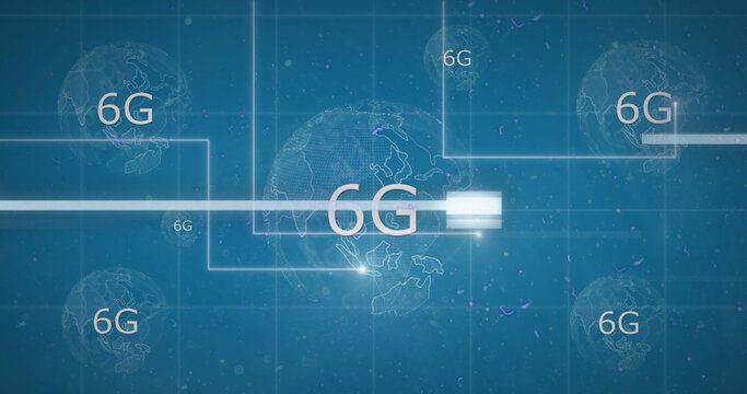Showing central 6G glowing rings on blue grid, with triangular arrows, pluses, traces and nodes