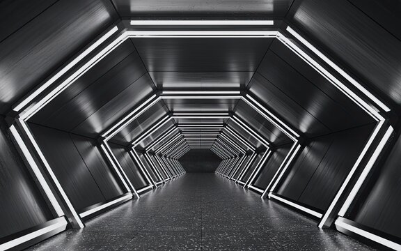 Futuristic Abstract Glowing Tunnel With Tiles Images