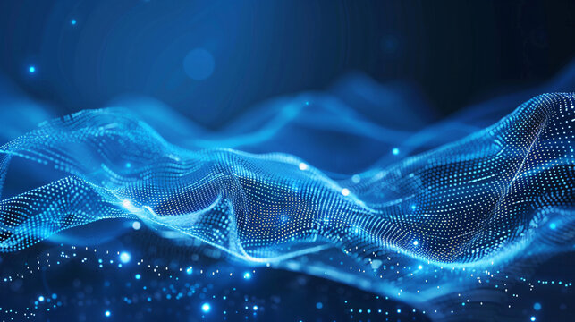 Abstract blue tech background with digital waves, network system with artificial neural connections and cyber quantum computing