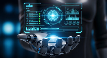 AI, Machine Learning, and Data Analysis Concept with Robot Hand