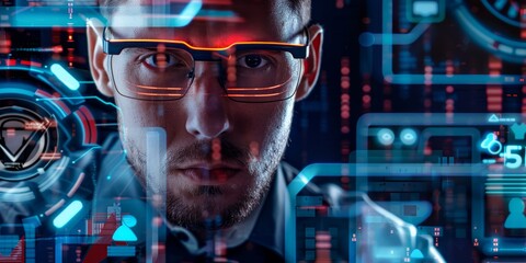 Futuristic ai interface with digital holographic elements
