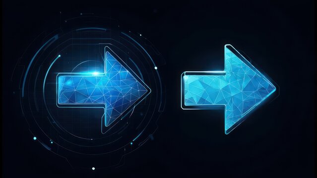 Dynamic blue digital arrows point forward, symbolizing progress and technological advancement in a futuristic interface