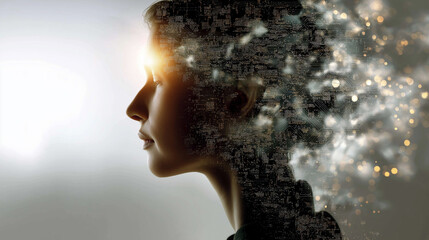 Futuristic digital brain interface with data code matrix