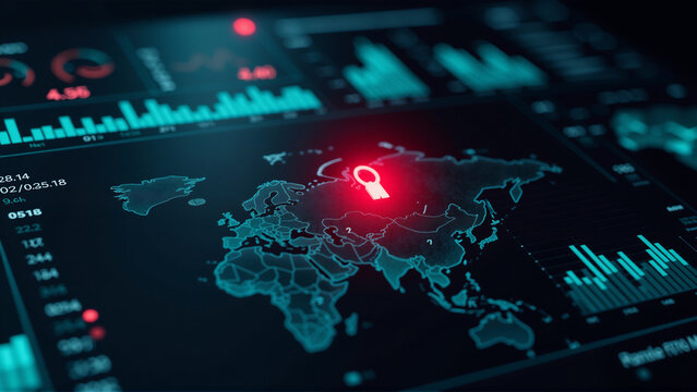 Digital dashboard tracking global outbreak data with a blue screen glow
