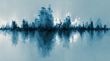 Biometric waveform tracing across a translucent screen with powder blue to silver gradient, symbolizing technology, data, identity, precision, and futuristic innovation.