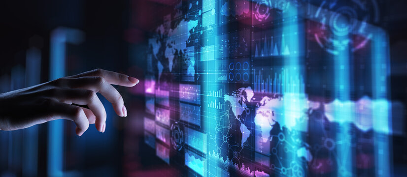 Futuristic digital interface with big data visualization