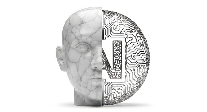 Neural network digital interface, Artificial Intelligence Marble Head Merged with Circuit Board Br