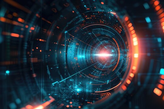 Futuristic digital tunnel with lights A futuristic abstract background with technological elements