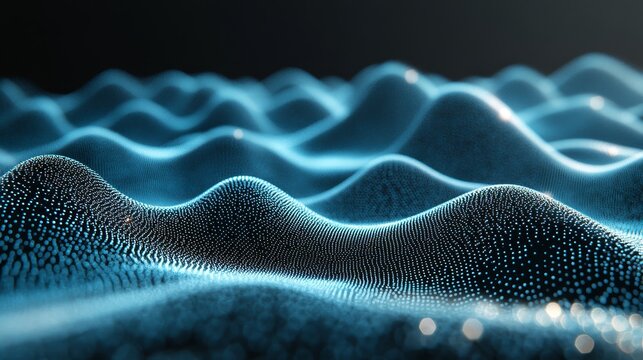Abstract Blue Digital Wave Background. Particles Form Smooth Wavy Surface. Big Data Visualization.