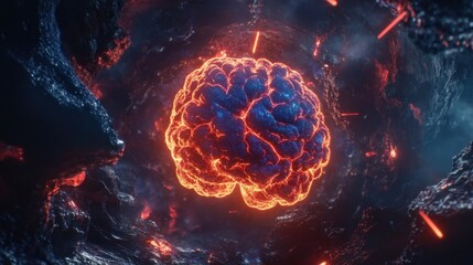 A radiant neon brain with streaming light trails, symbolizing the fast-paced nature of intelligence and mental agility.