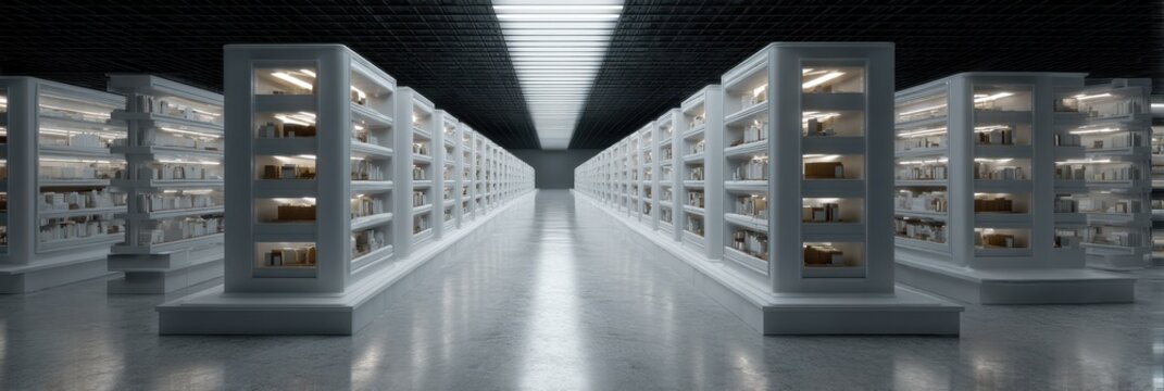 Futuristic lab and science technology concept. Communication network. Medical technology. Wide angle visual for banners or advertisements.