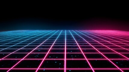 Abstract Grid Landscape with Neon Lights and Futuristic Vibe.
