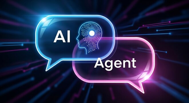 Intelligent AI agent communication interface visualizing futuristic digital conversation and innovation
