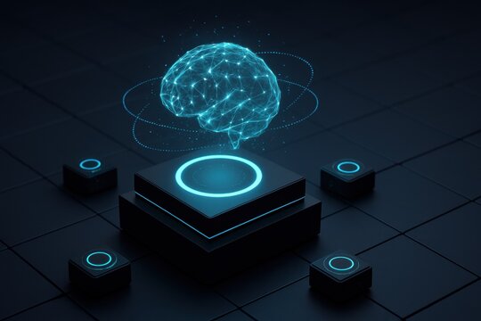 Futuristic ai glyph typography on digital brain hologram