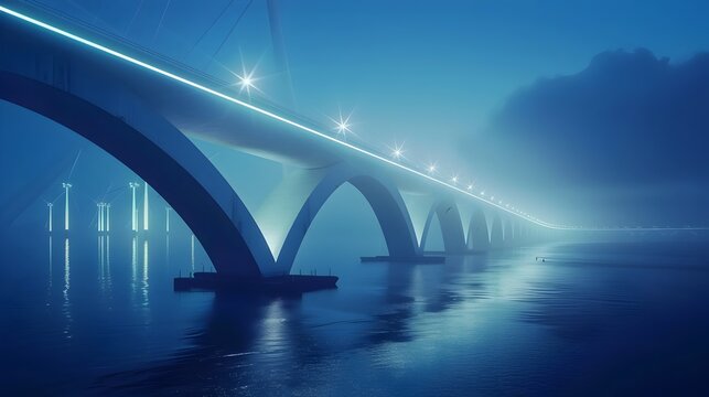 Futuristic Wind Powered Bridge Harnessing Sustainable Energy with Glowing Illumination