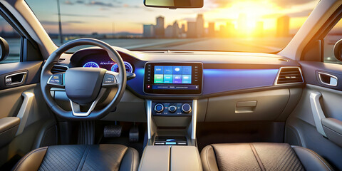 High-tech car dashboard interface with digital display, car, vehicle, dashboard, screen, technology, modern