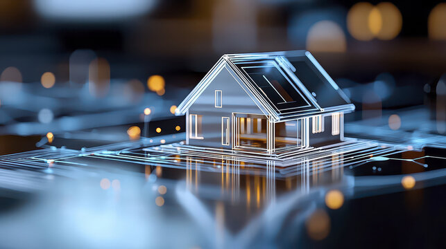 Glowing smart home visualization showcases modern technology and innovation in home design, creating futuristic atmosphere