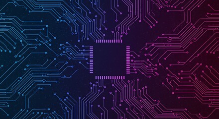 Conceptual digital technology background illustrating a central processing unit with glowing circuit board connections