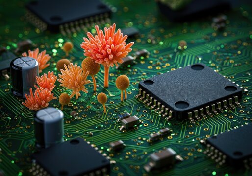 Electronic Components Evolved Biological Ecosystem Digital Nature Fusion