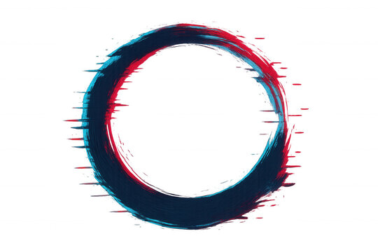 Abstract glitch art circle, distortion effect on ensō brushstroke, digital error cyber frame on transparent background