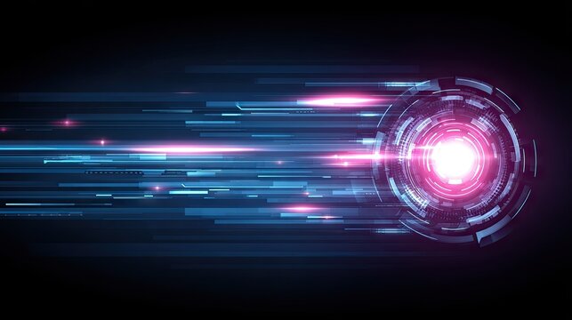 High-speed glowing light trails forming a futuristic circular turntable, vibrant technology background with dynamic motion effect, digital innovation and advanced tech concept illustration