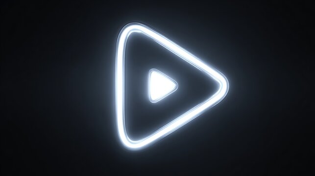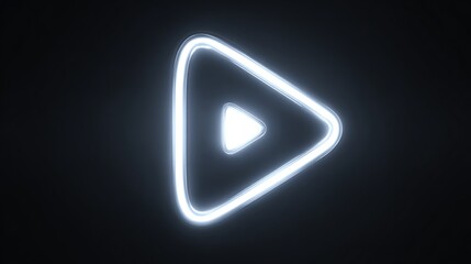 Luminous blue neon play symbol, rounded triangle on black background, glowing center