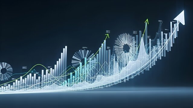 Digital Financial Data Graph with Increasing Trend and Arrow in Futuristic Style