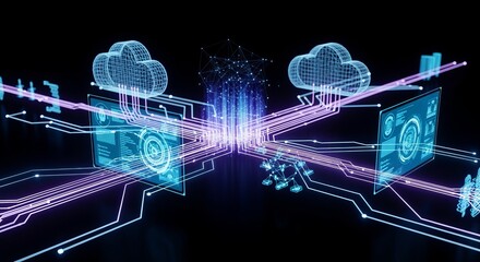 Futuristic Cloud Computing Interface With Neon Glow Images