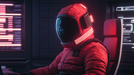 Futuristic pilot in cockpit.