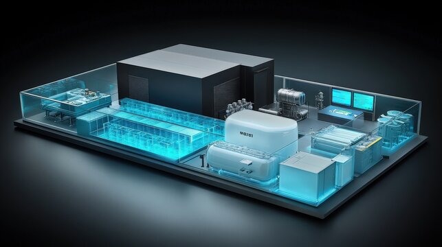 3D Render of Modern Industrial Facility with Advanced Technology and Innovative Energy Solutions