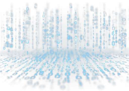 Close-up of number codes raining down in bright cyberspace. Binary coding pulses across screens. safe pt tries to block malware from spreading. png artwork.