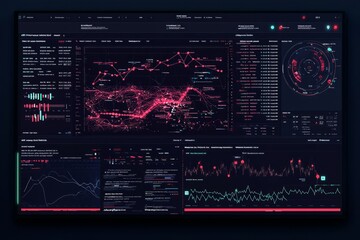 A cybersecurity dashboard with real-time alerts and threat intelligence. The visual includes security incident timelines, attack vectors, and response strategies, Generative AI